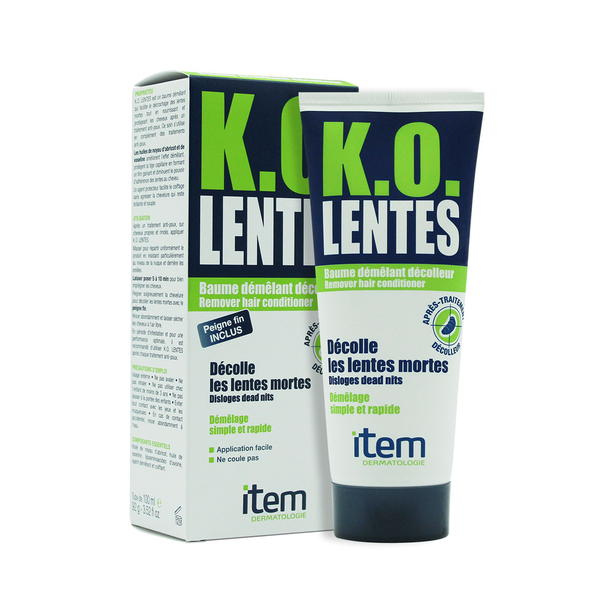 Μετά τη χρήση του Item K.O. Poux ή άλλου αντιφθειρικού προϊόντος, απλώνετε το K.O. LENTES σε καθαρά βρεγμένα μαλλιά. Κάνετε μασάζ έως ότου καλυφθούν όλα τα μαλλιά ομοιόμορφα, δίνοντας ιδιαίτερη προσοχή στον αυχένα και την περιοχή πίσω από τα αυτιά.